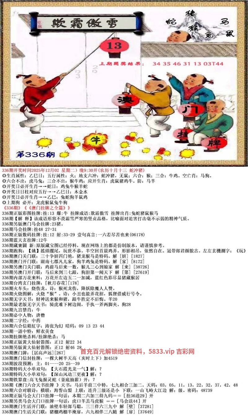 | 334期 | 虎羊鸡 | 虎羊 | 虎 |